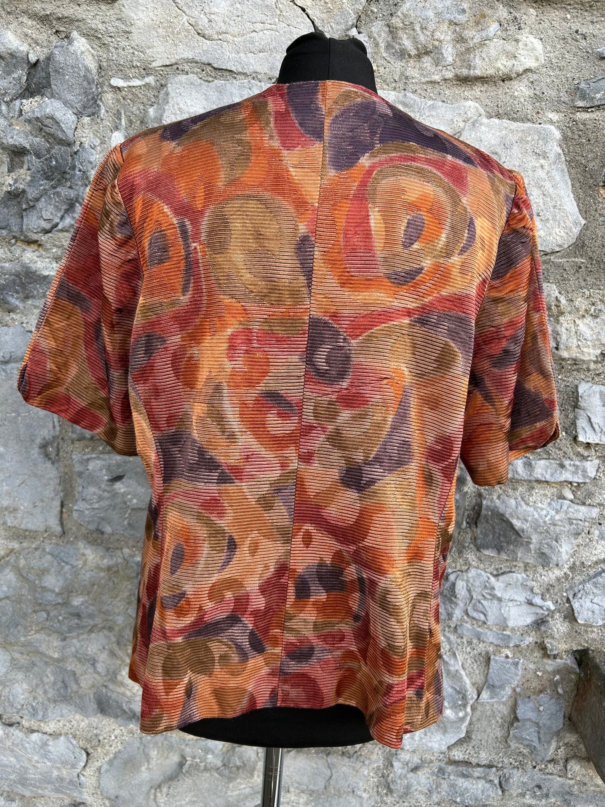 80s brown abstract short sleeve jacket uk 12