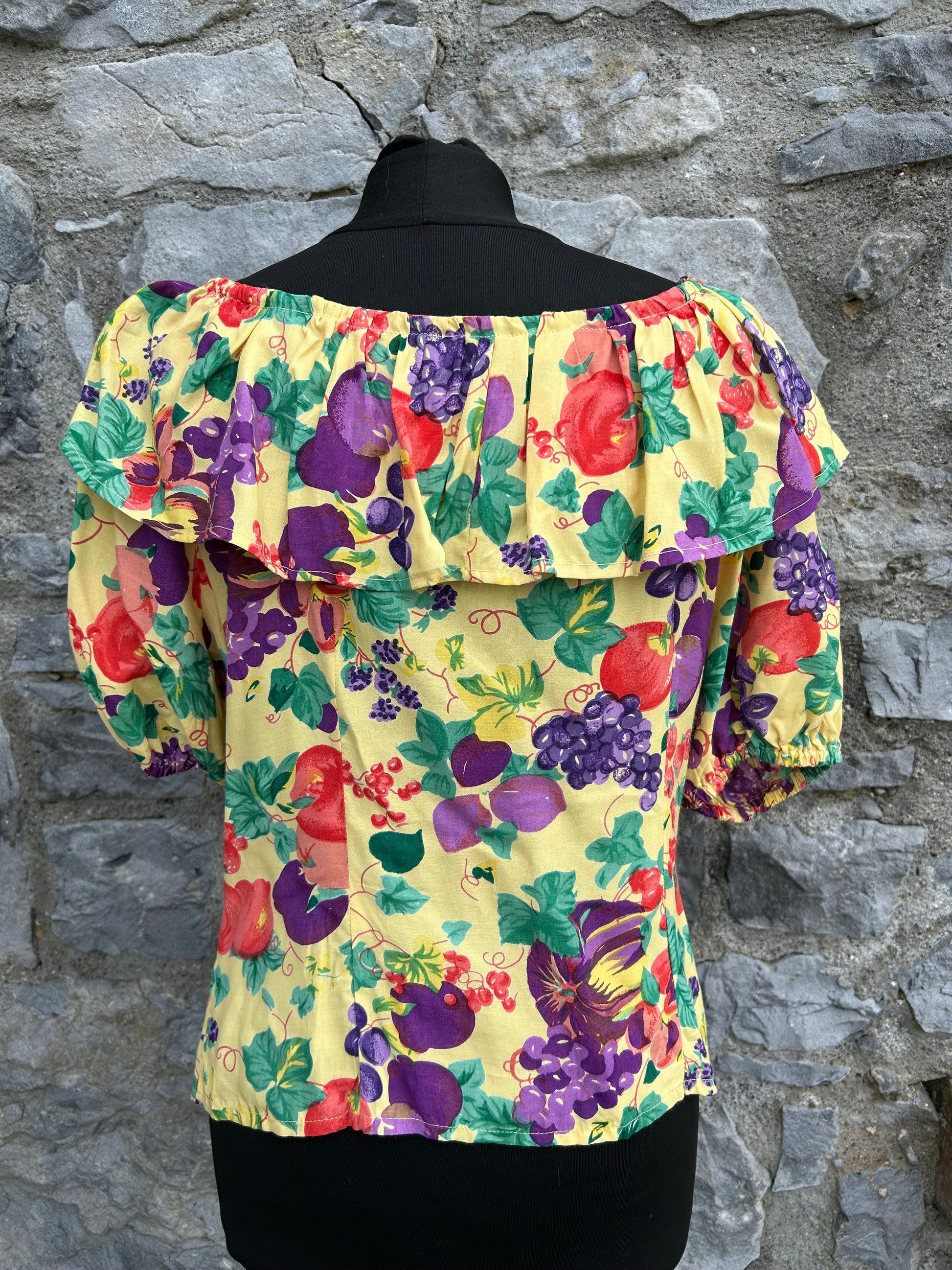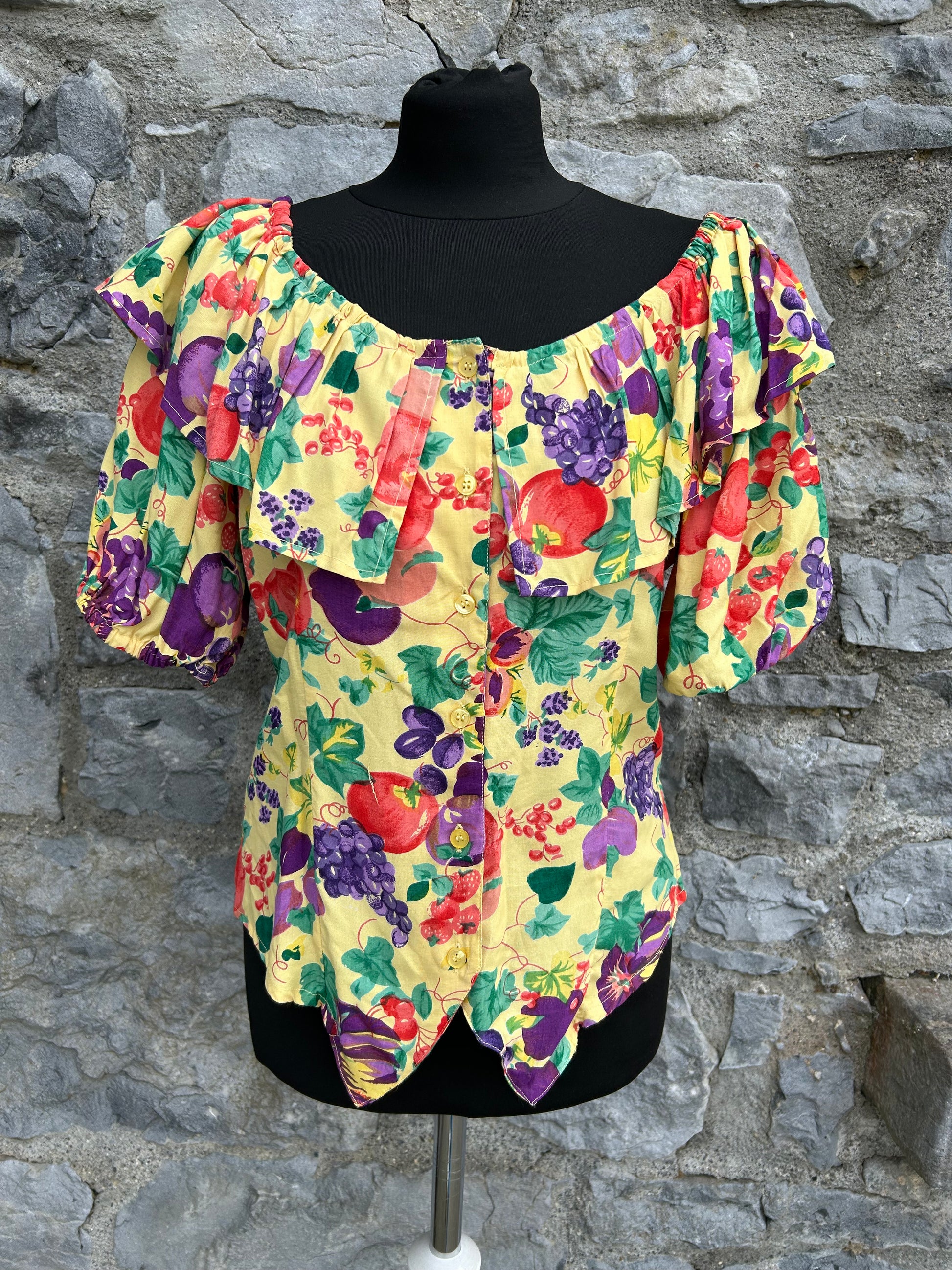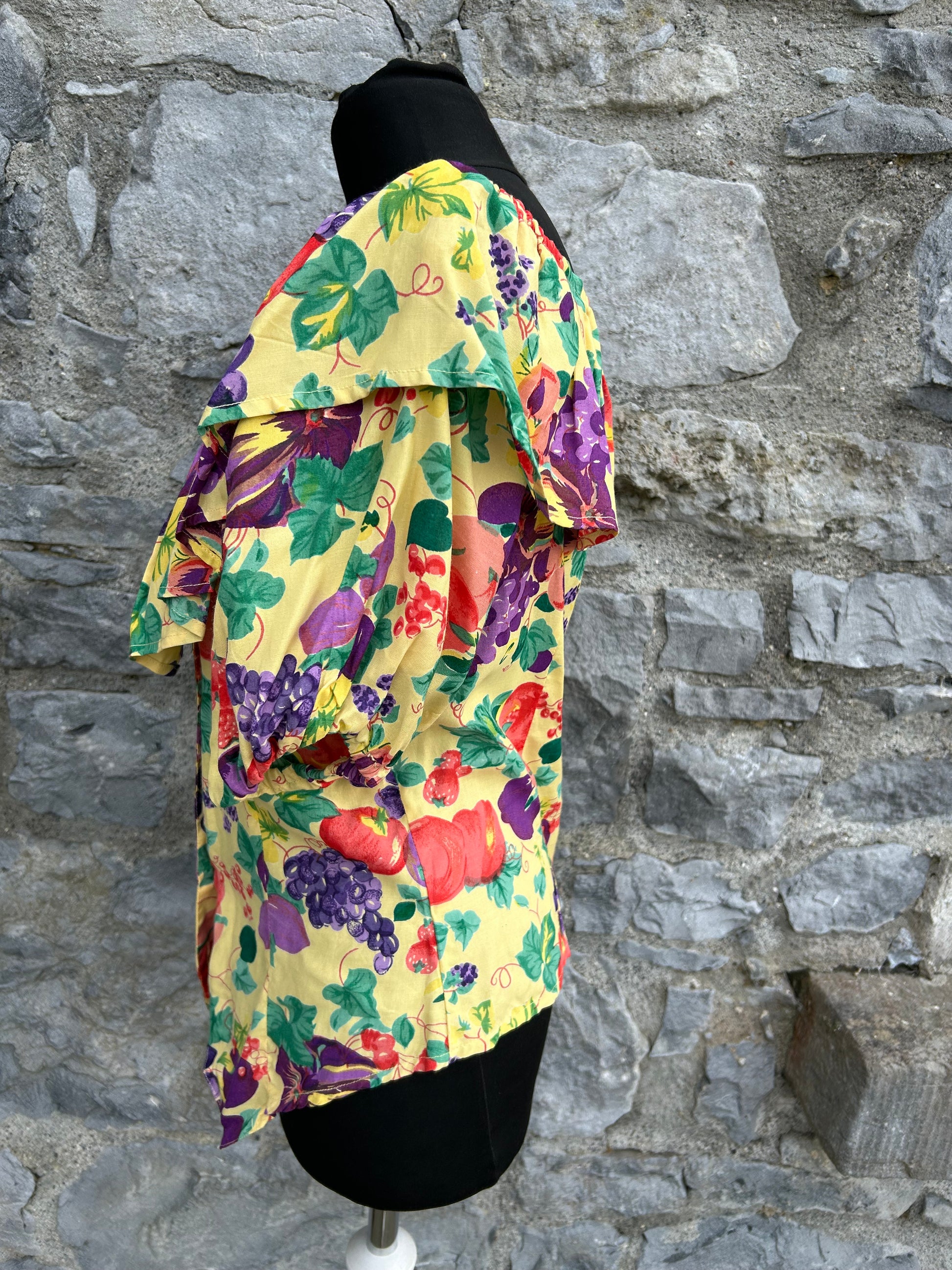 80s yellow fruit blouse uk 10