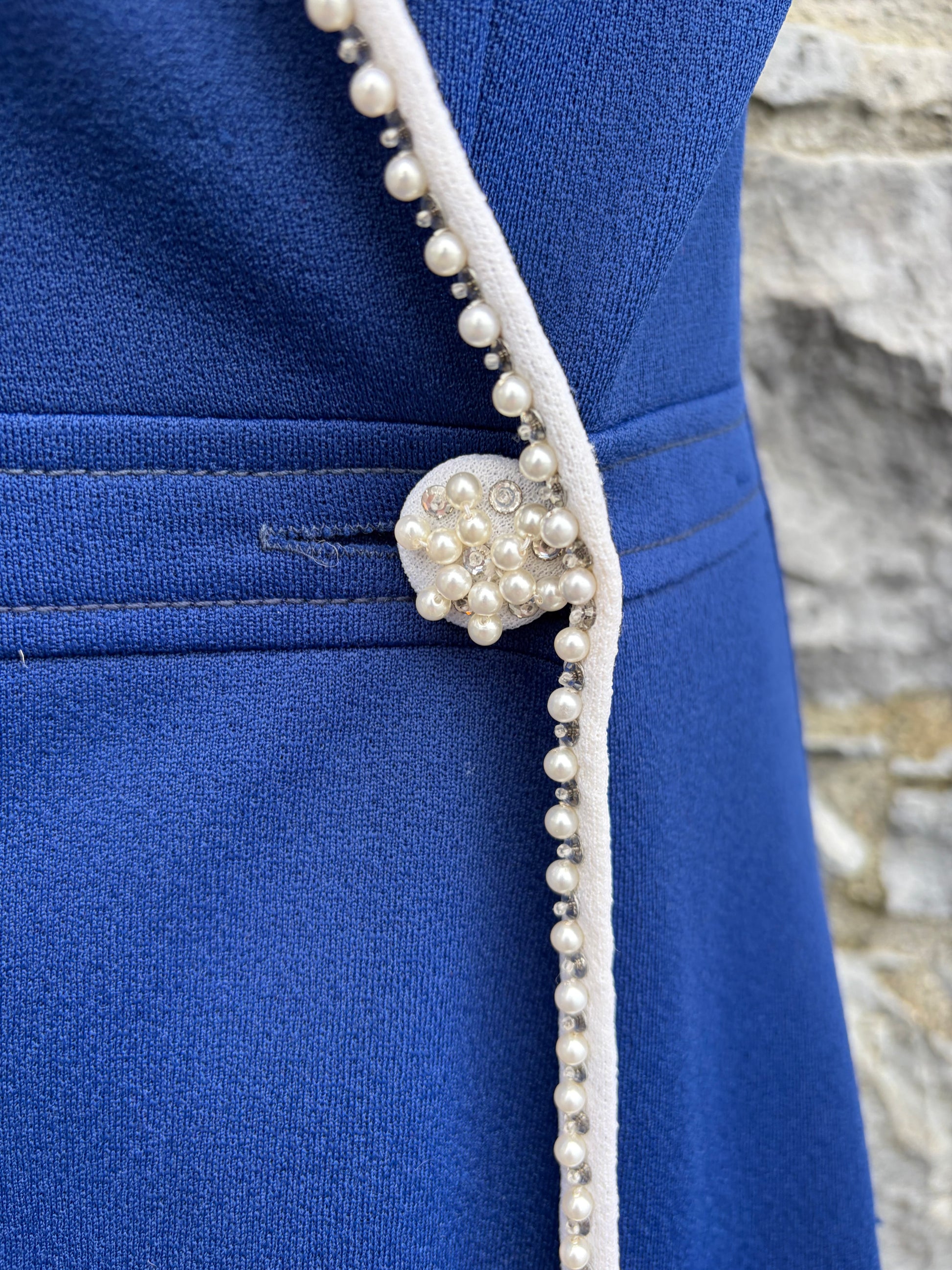 90s blue wrap pearl trim dress uk 10-12
