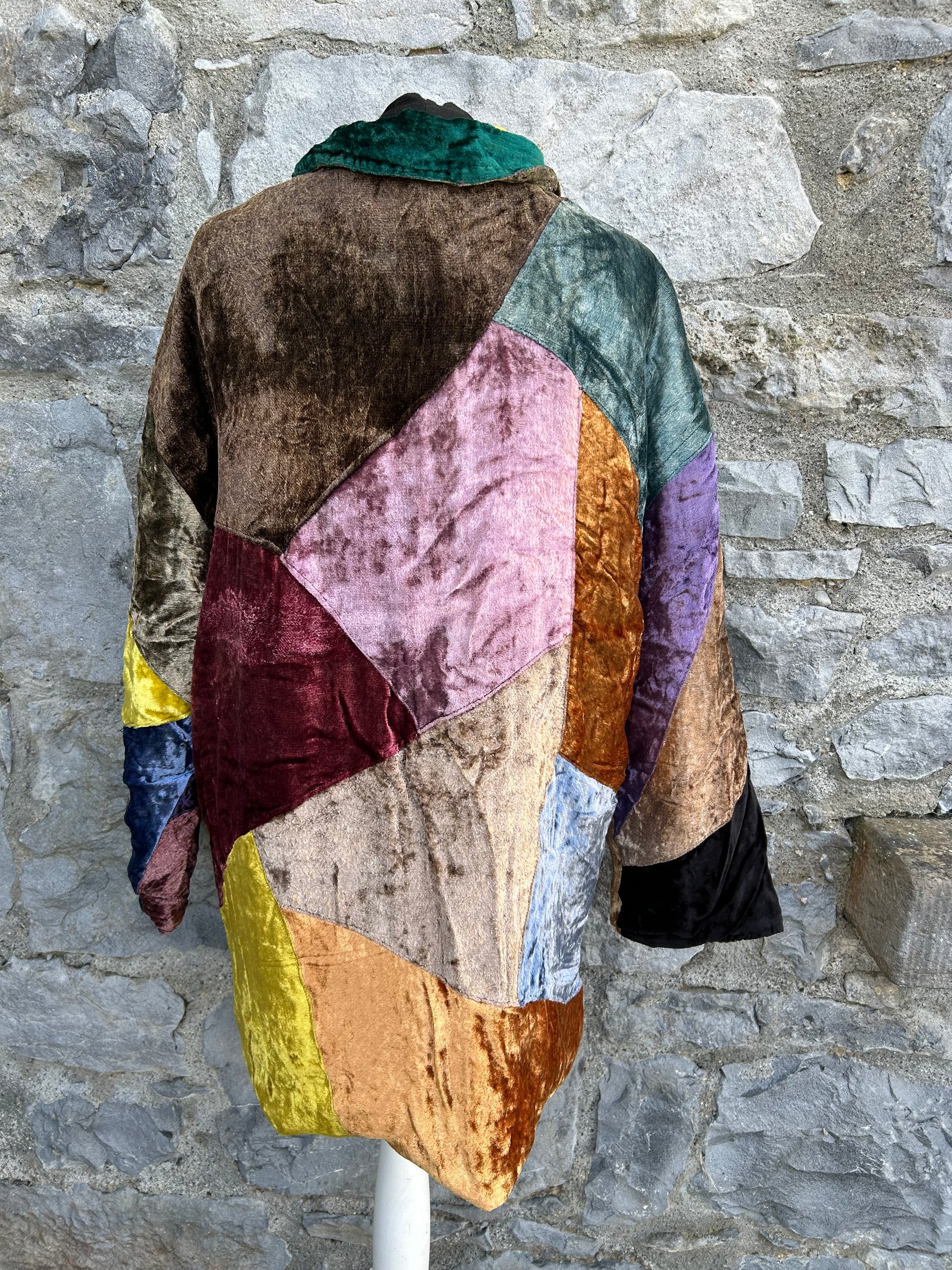 90s colourful patchwork velvet coat uk 14-16