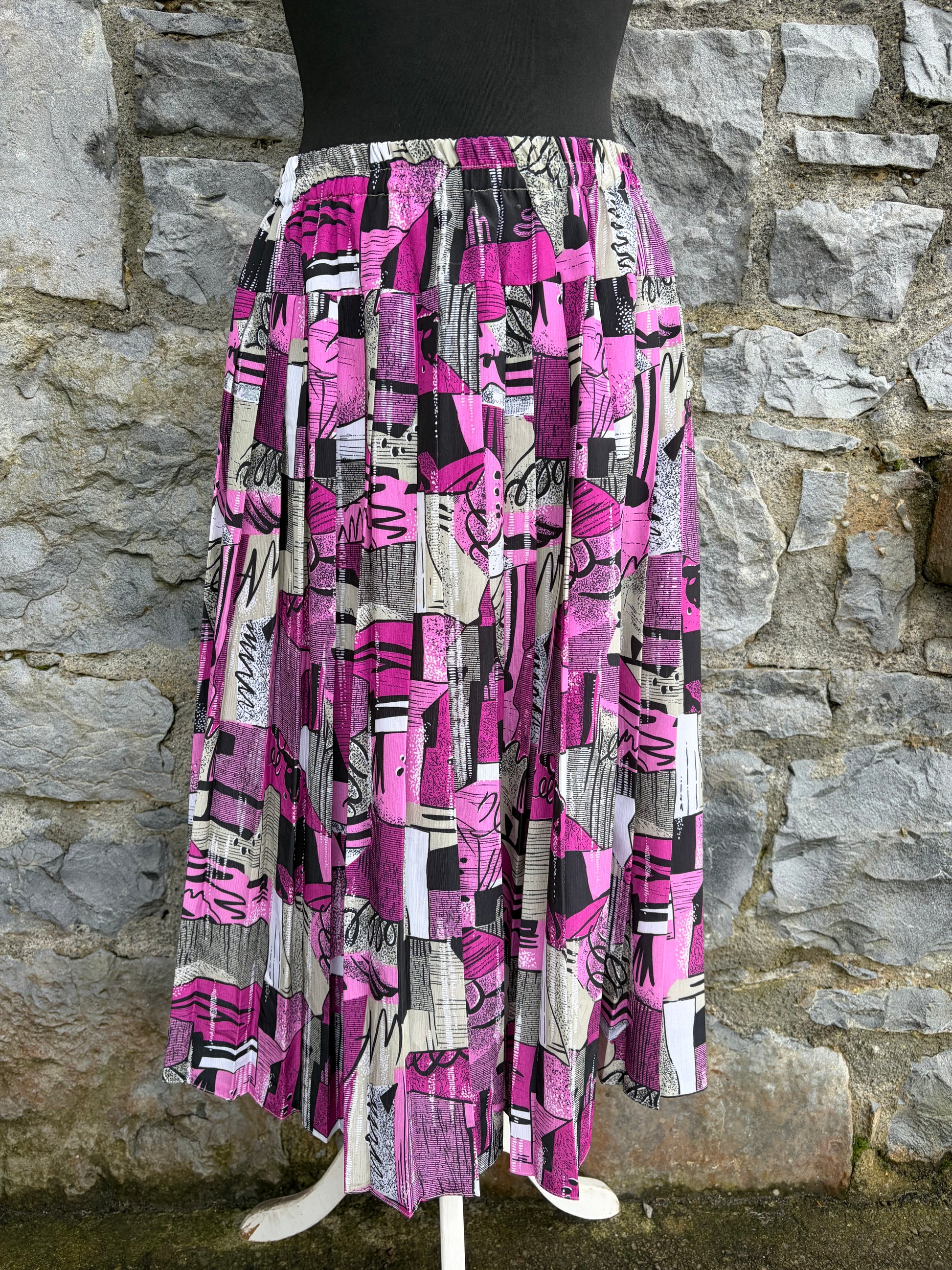 90s pink geometric pleated skirt uk 10-12