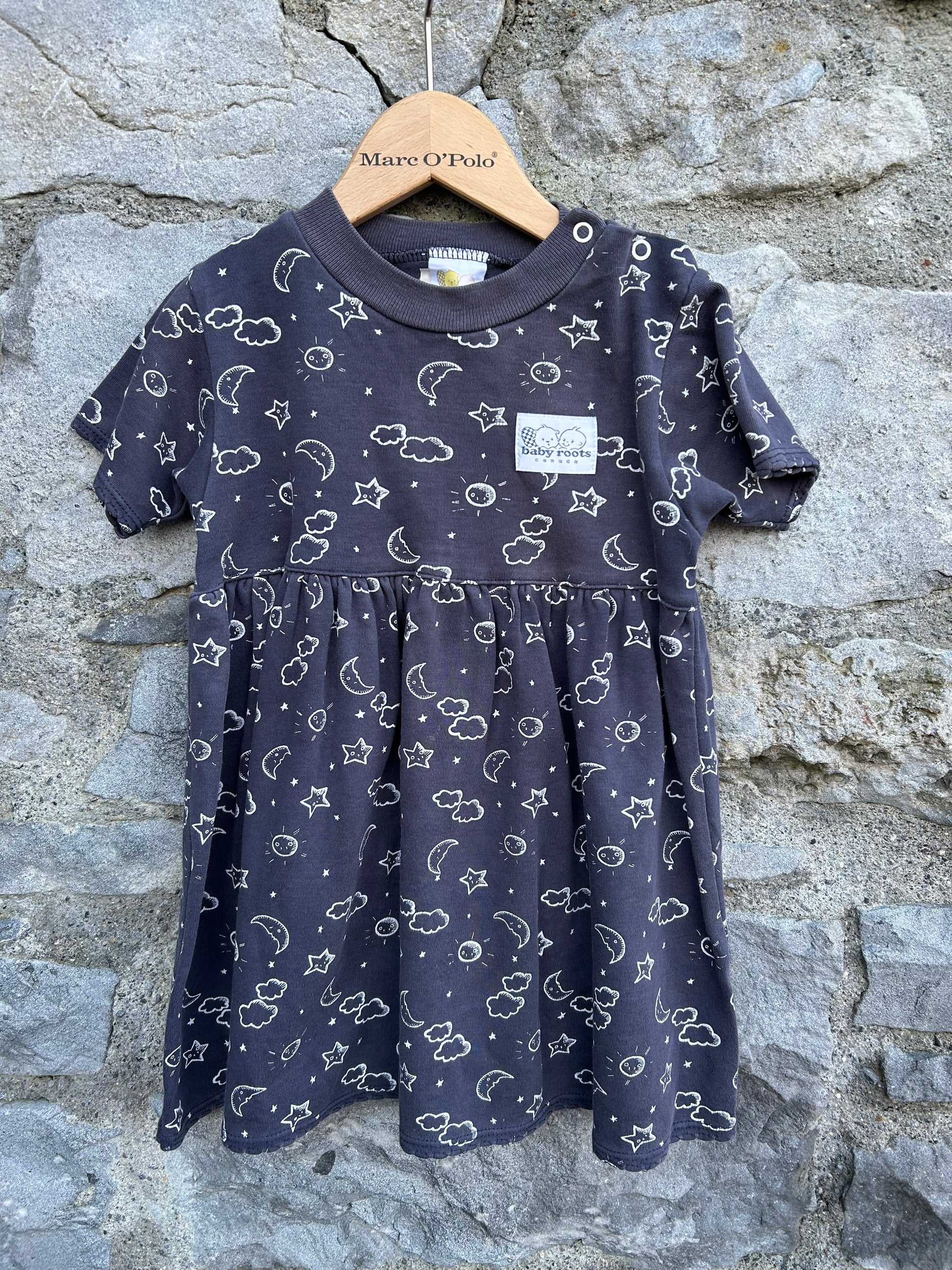 90s Baby Roots stars&suns navy dress