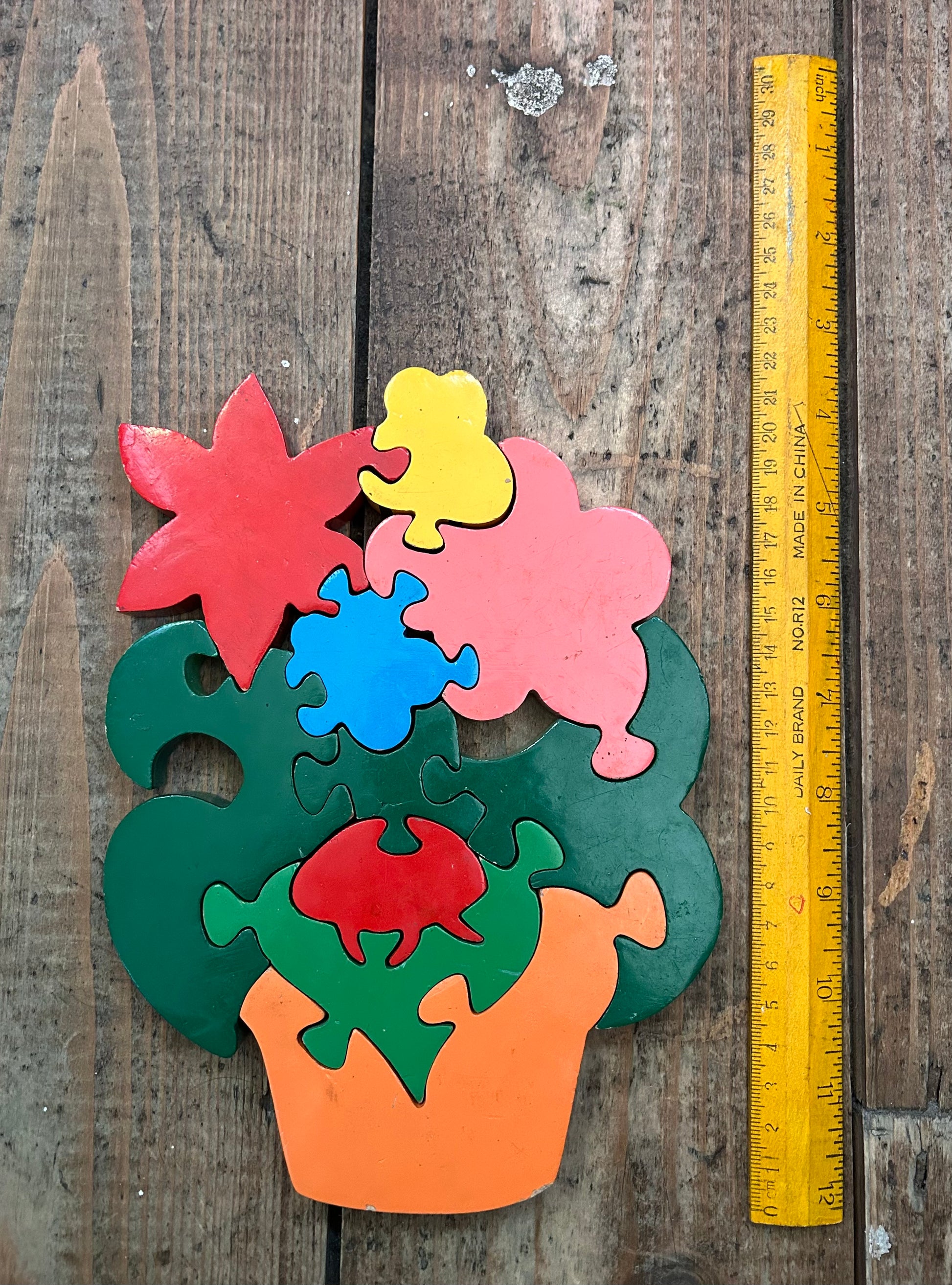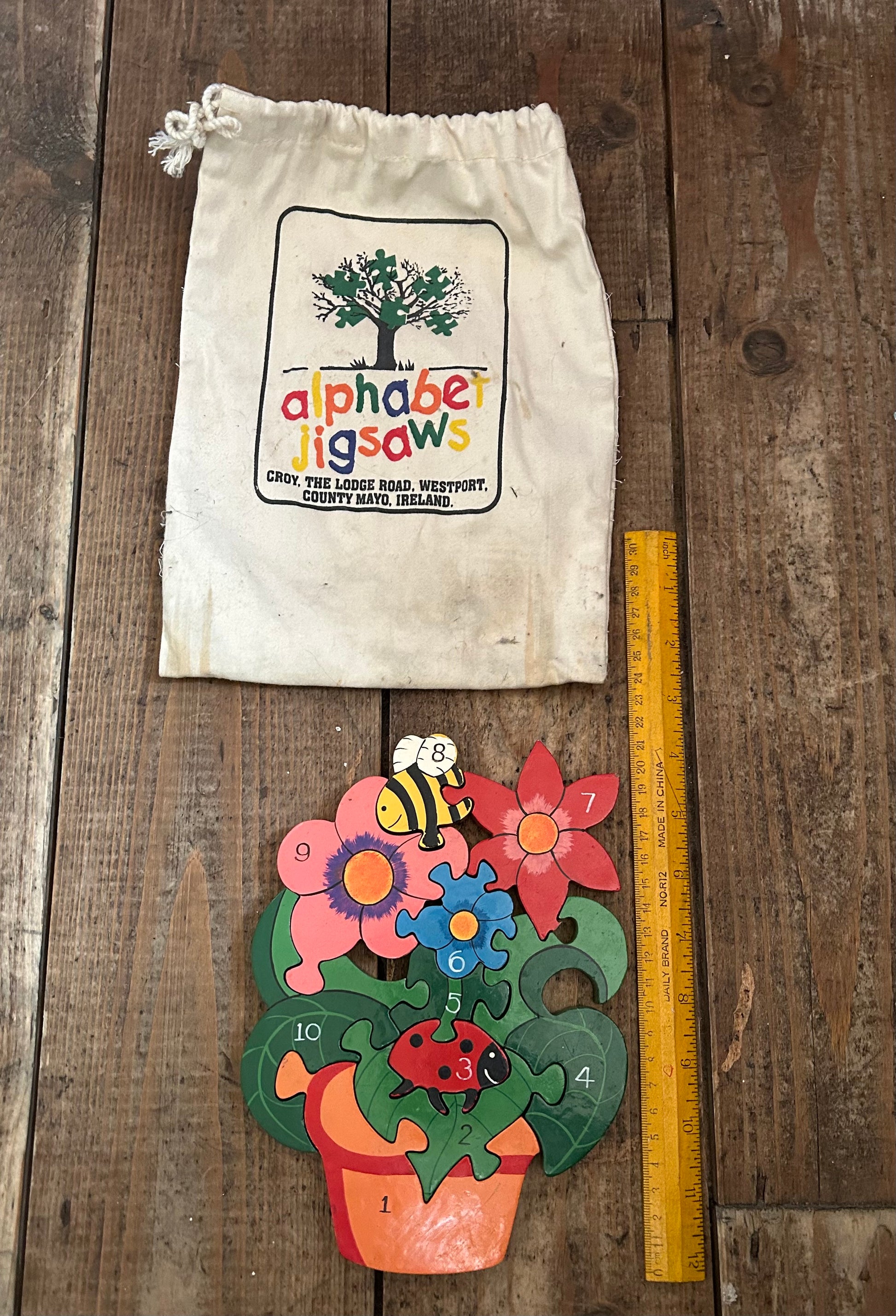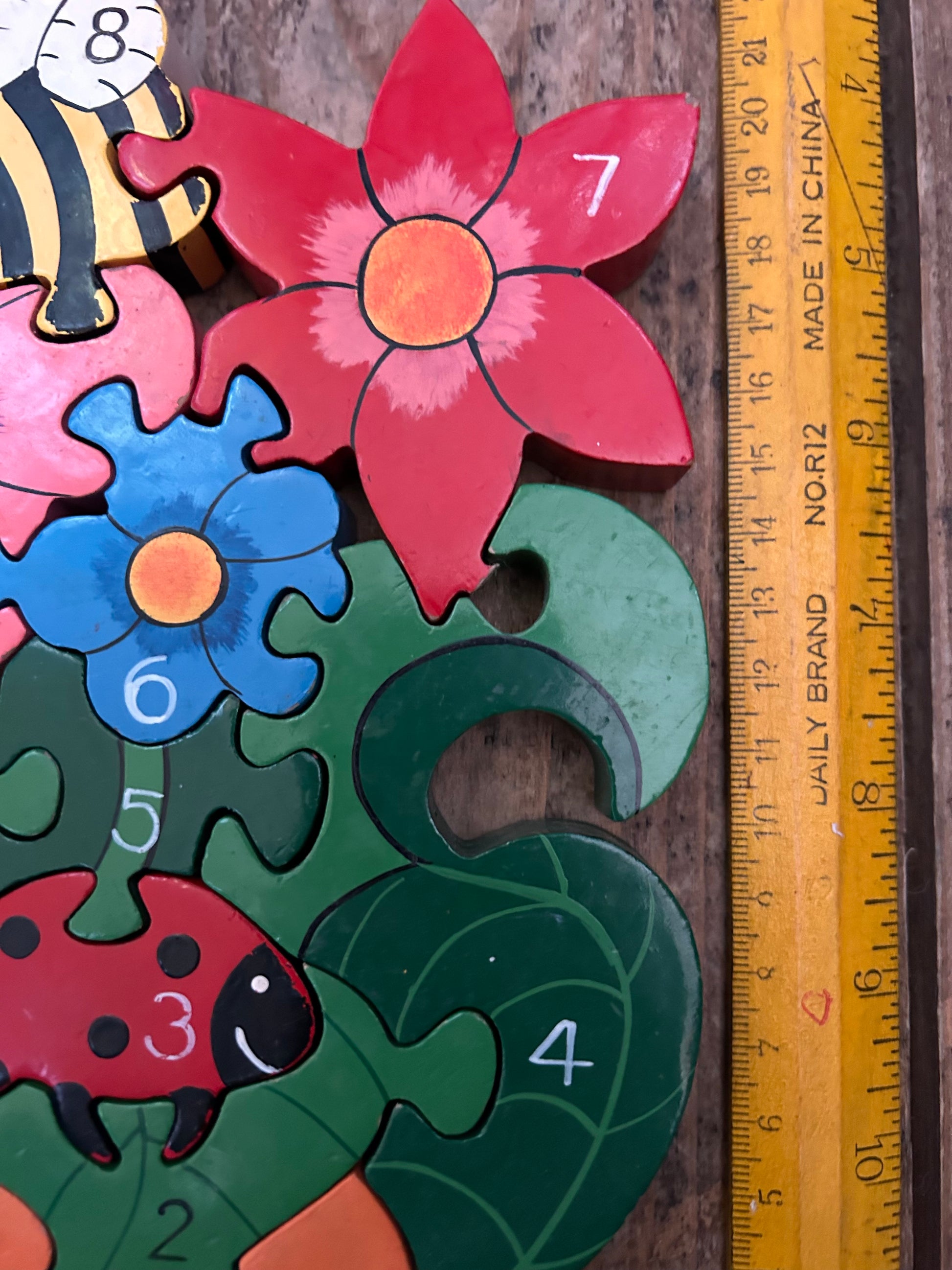 This handcrafted toddler jigsaw puzzle is designed to encourage dexterity and logic and will make learning to count fun!