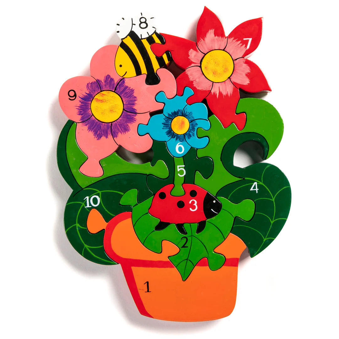 This 1 to 10 Number Flowerpot jigsaw puzzle, complete with buzzy bee and ladybird, is a great first jigsaw puzzle for children learning to count.
