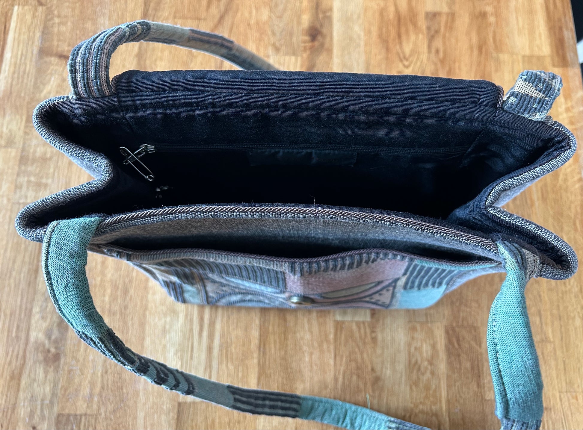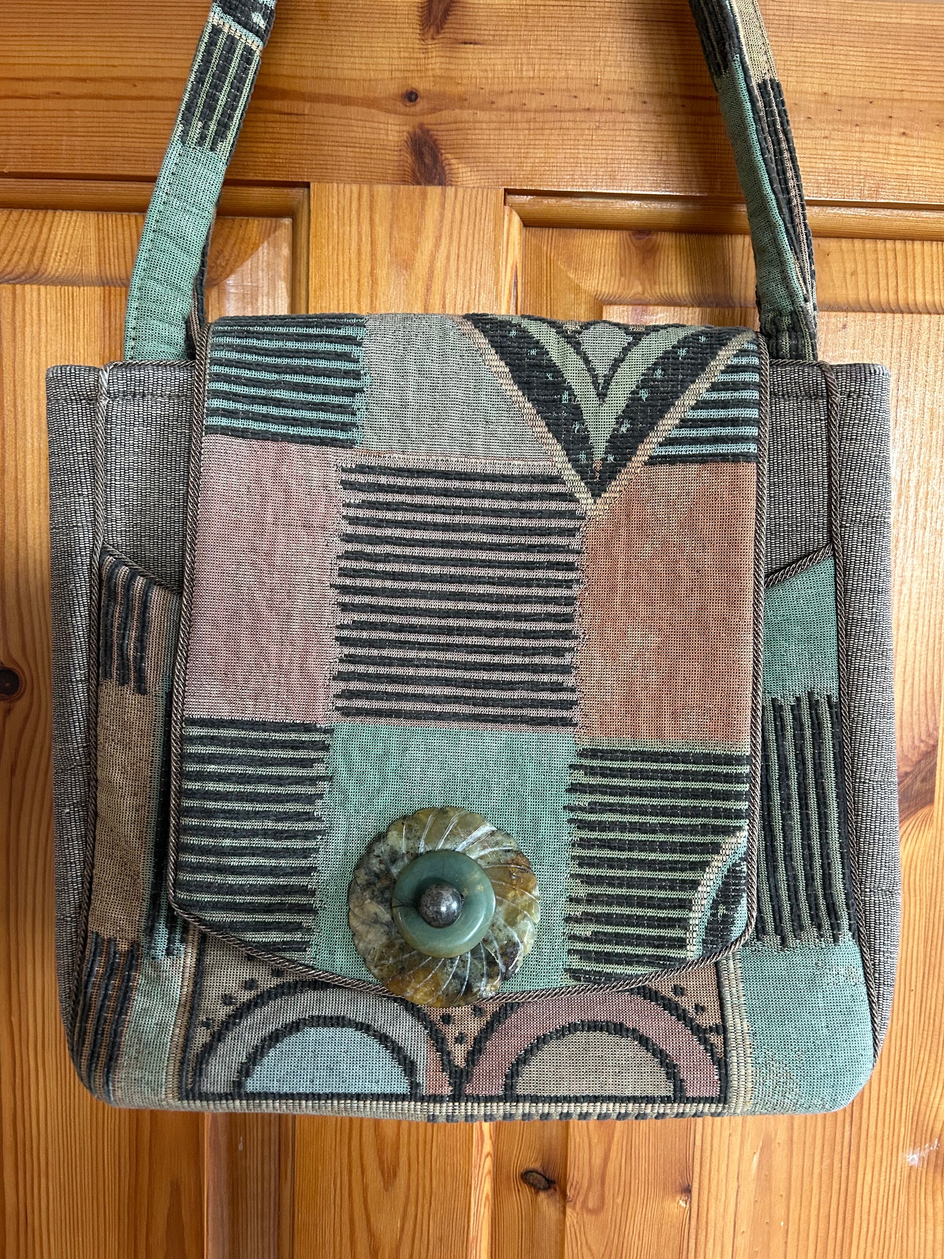 Green&brown with jade button bag