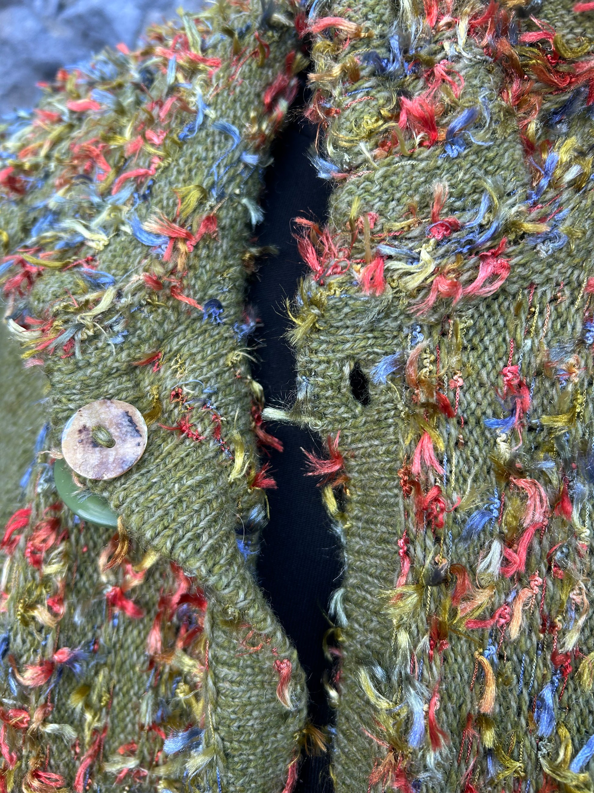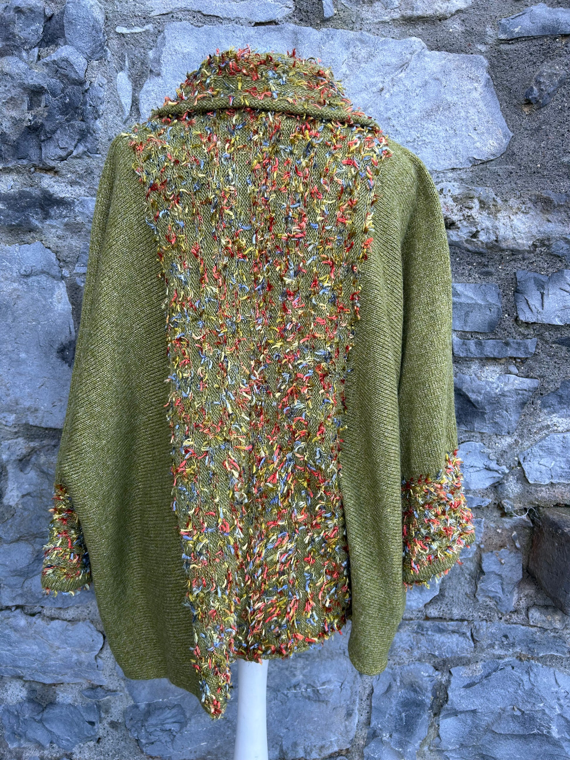 Green cardigan with multicolored textured yarn uk 16-20