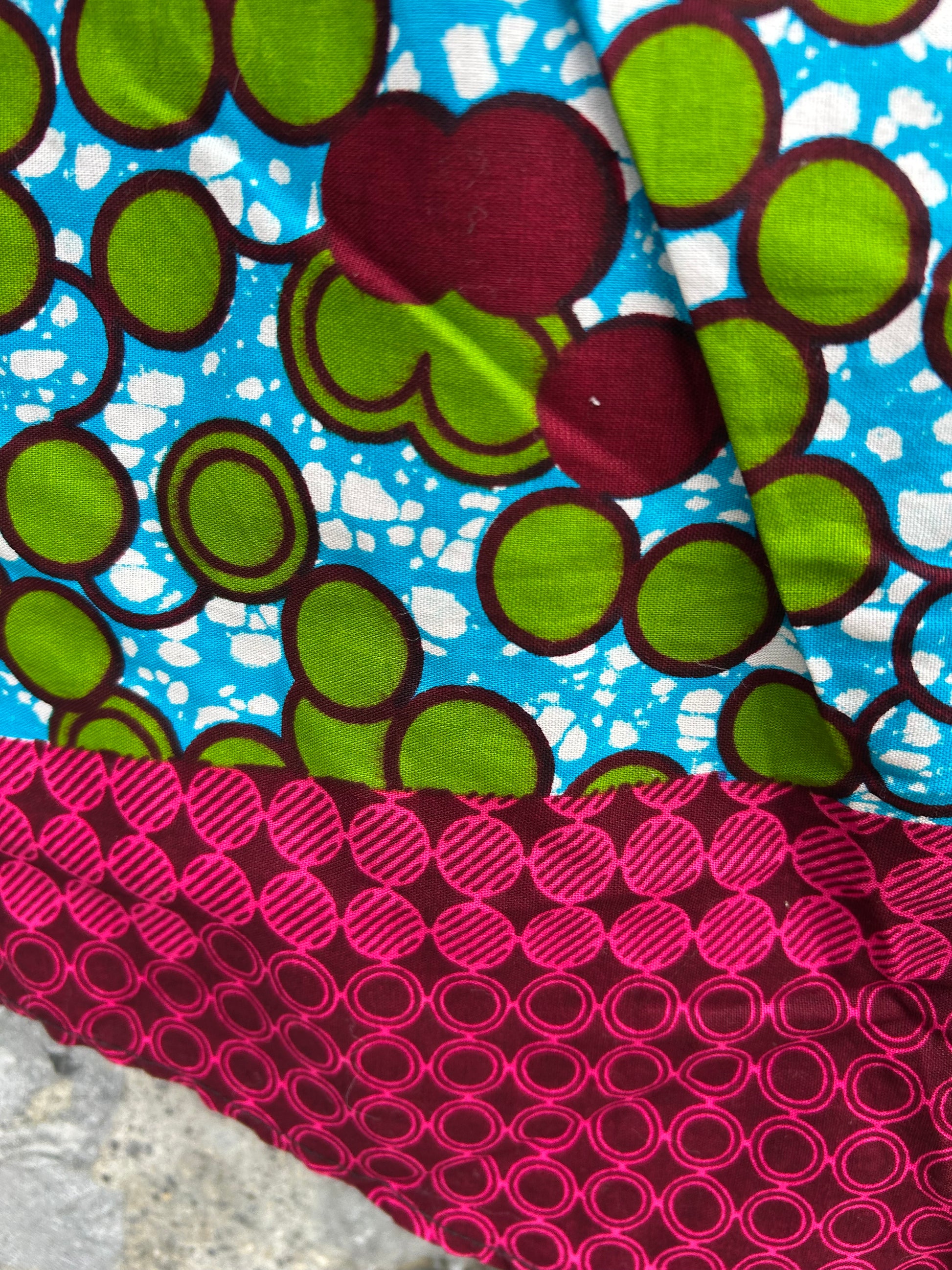 Green dots top, non stretchy fabric