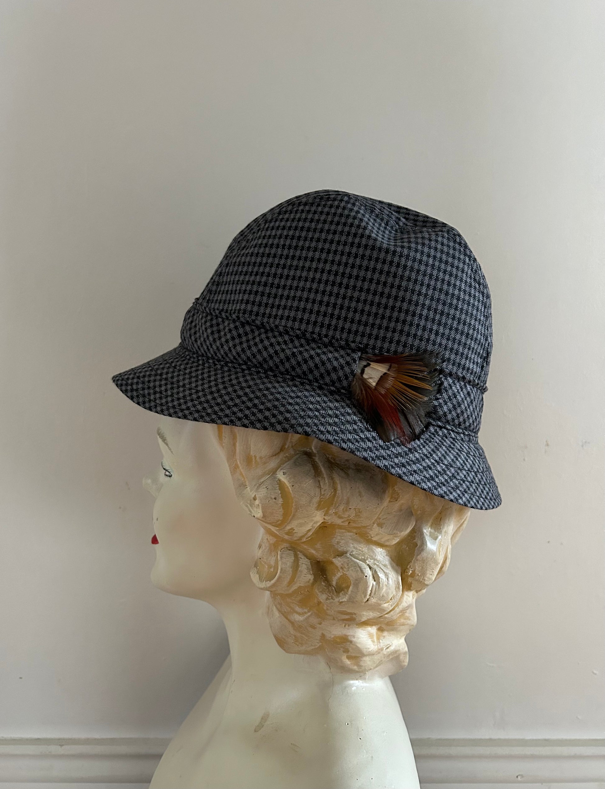 Grey gingham hat