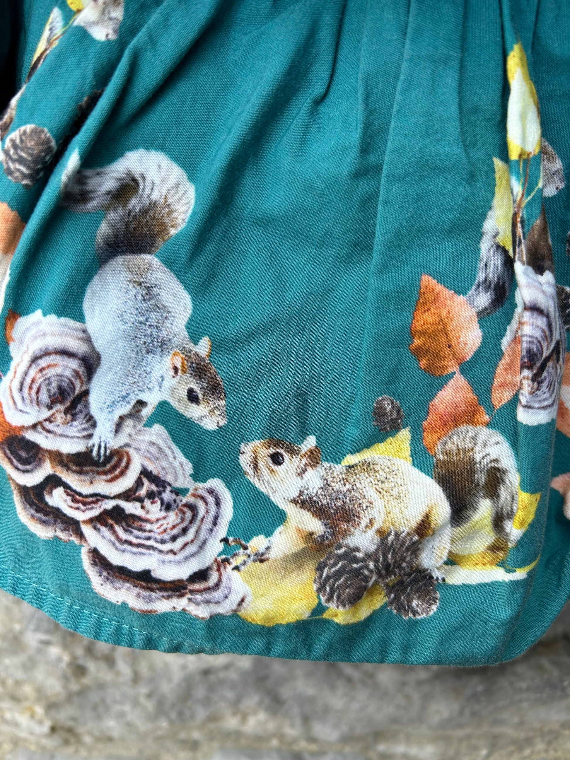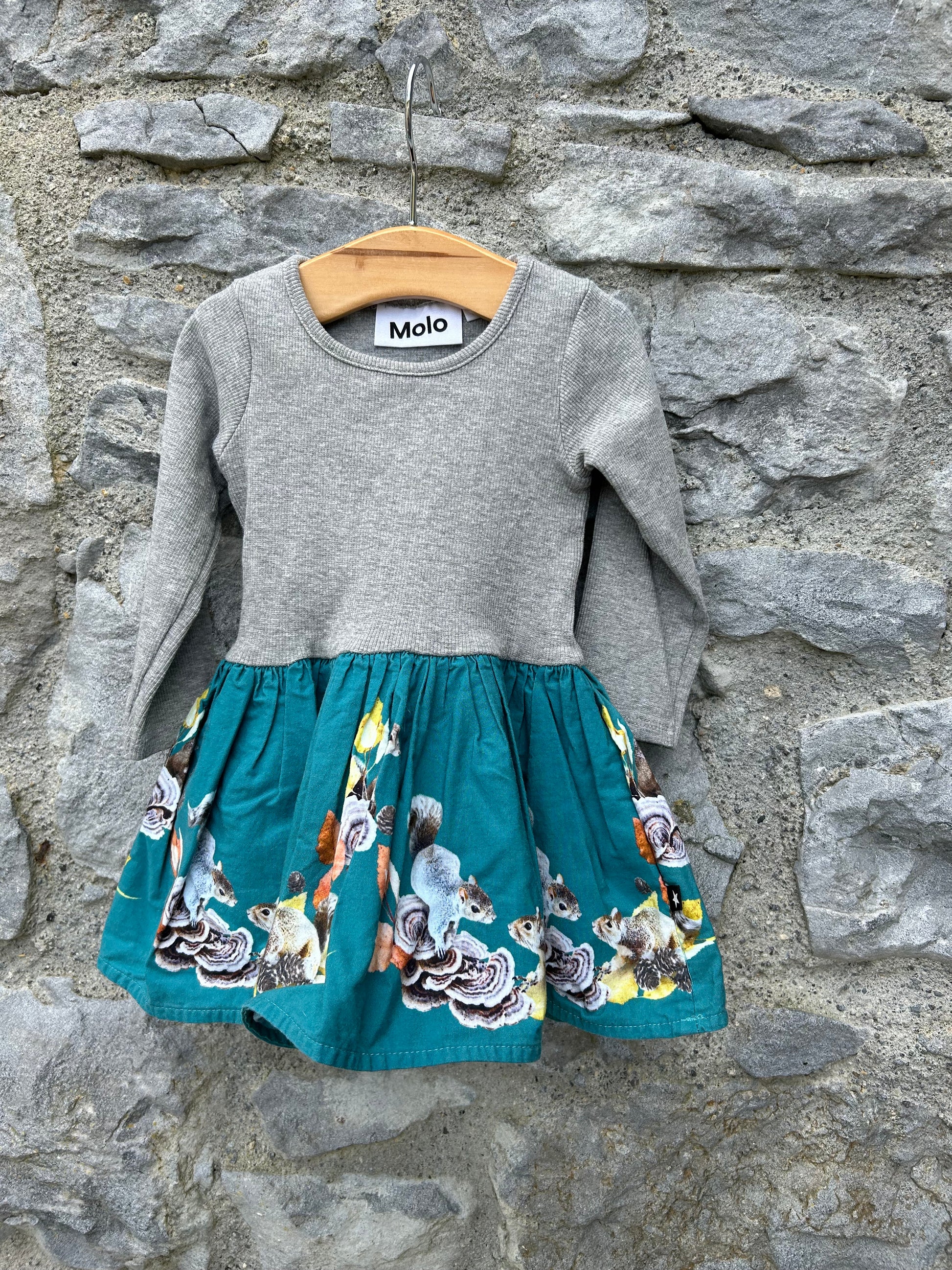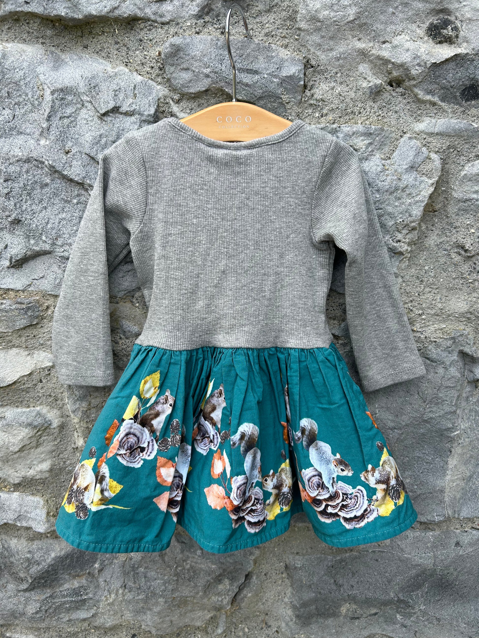 Squirrels teal&grey dress 6m (68cm)