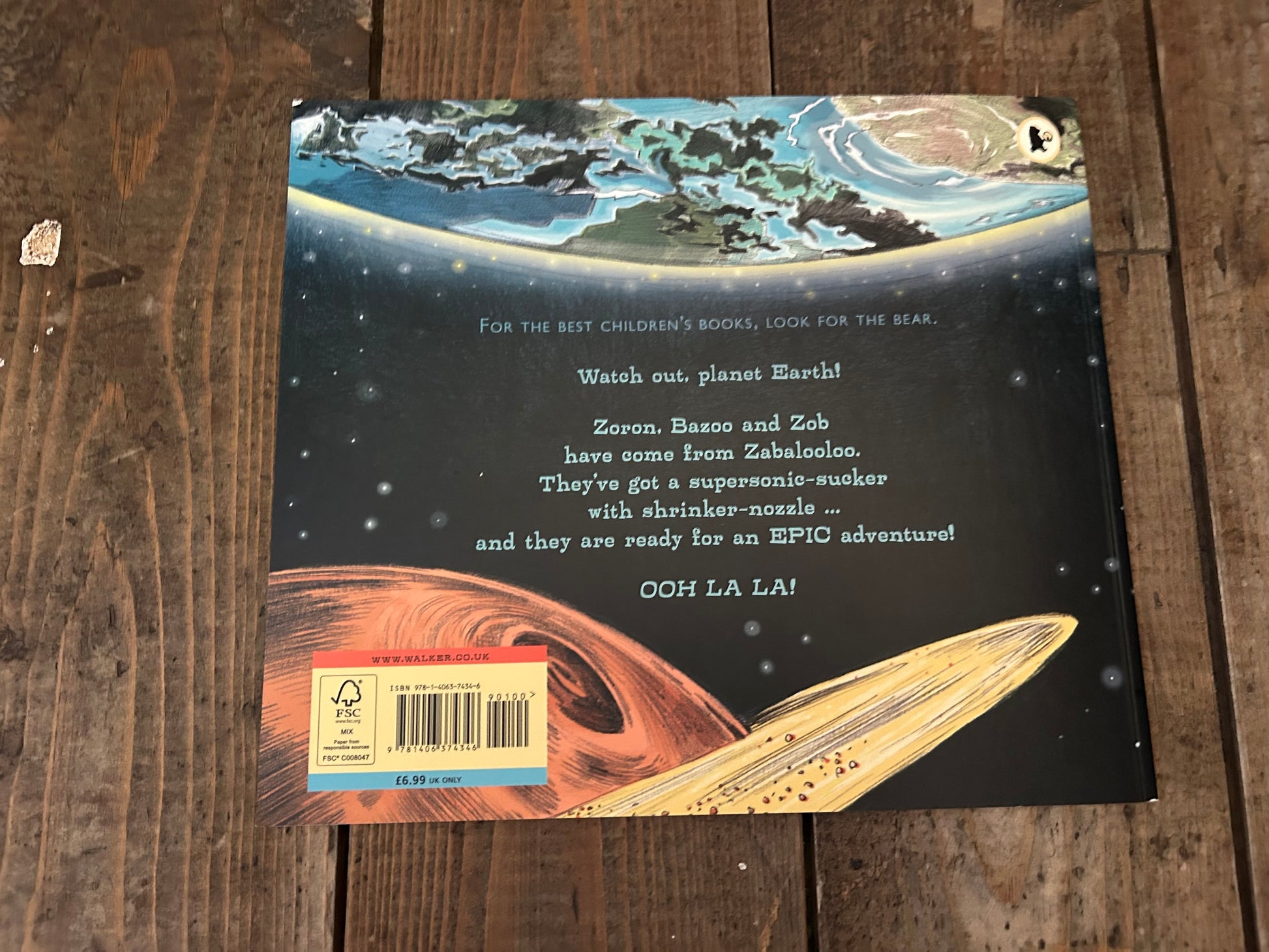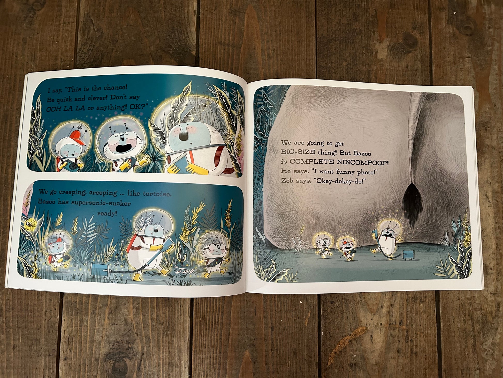 We are friends on epic adventure to Planet Earth! We got space ship! YEAHHH! Look - it's got steering wheel, space biscuits and party area. OOH LA LA! From the author of Hoot Owl, Master of Disguise and the team behind Don't Call Me Choochie Pooh! comes a wildly inventive, contemporary picture book comedy about aliens. Boron, Bazoo and Zob are three extra-terrestrials on a mission. They're going to take something brilliant from Earth and bring it back to their home planet, Zabalooloo. Something like … an enormous elephant! But this goofy, giddy trio are simply too overexcited - they're never going to catch anything if they keep wiggle-woggle dancing, taking selfies and shouting, "Ooh la la!".