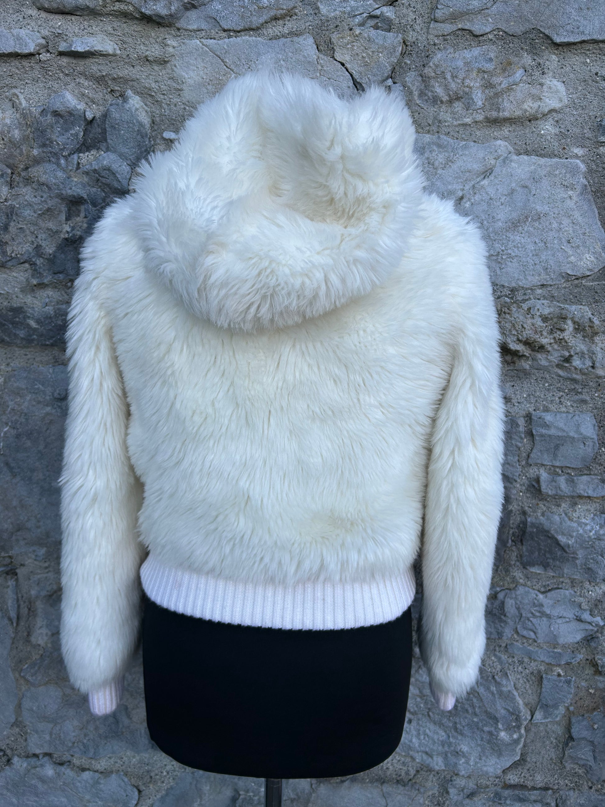 Y2K white furry cropped jacket uk 6-8